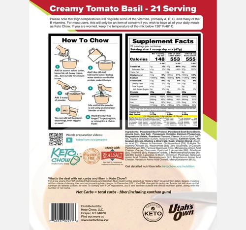 Keto chow nutrition label